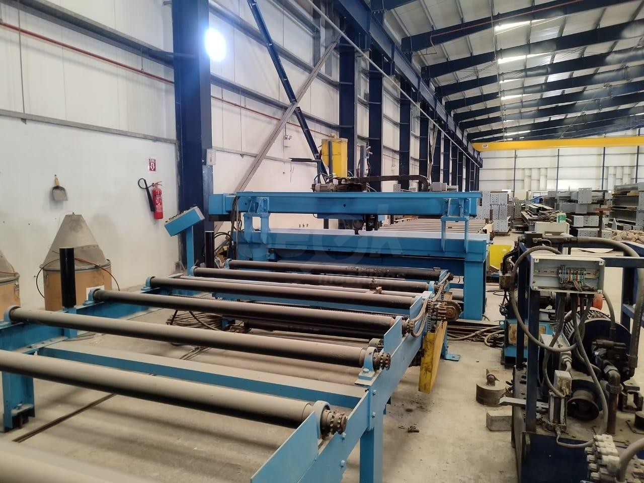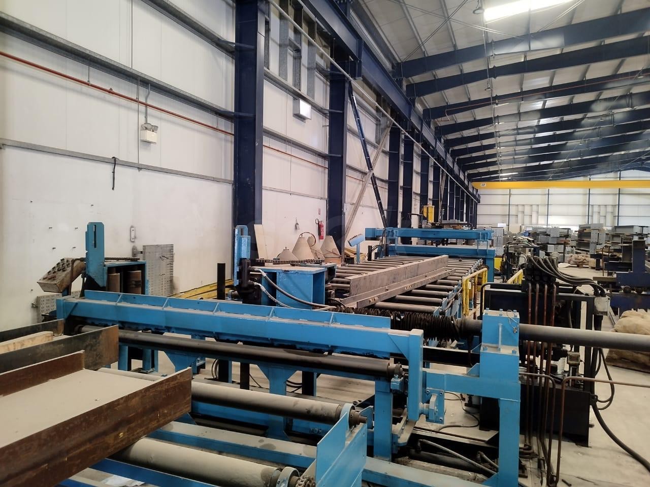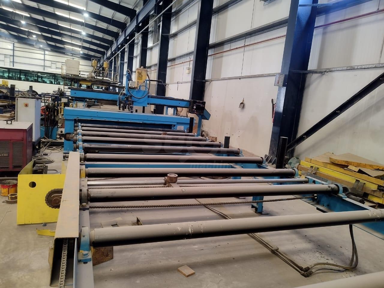 Invent Weld PEB Beam welding systems are used to automatically weld the Flange plate to a web plate to form a Pre-fabricated Beam. The beam line equipment comprise of conveyors, Web Splice welders. Tack welding machine, Pull through welder (Auto Welder),