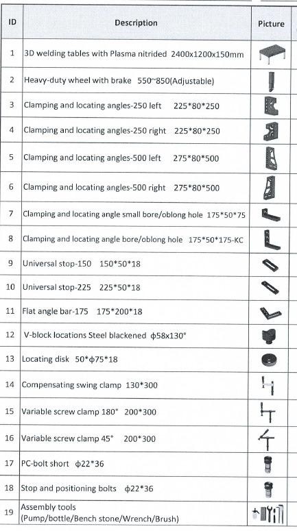 | Plasma Nitrided Welding Table | 2400x1200x150 mm |