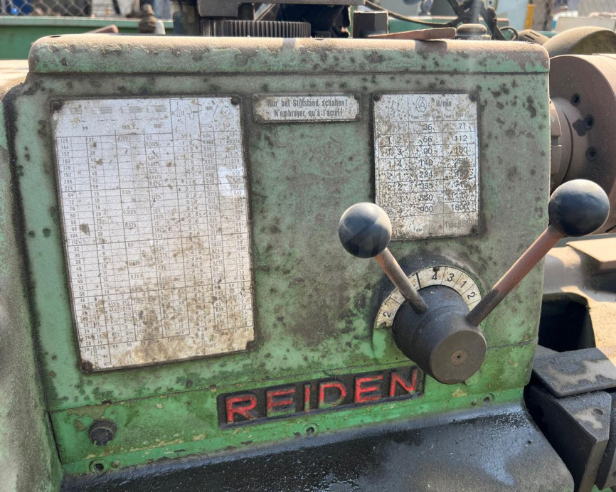 The Reiden lathe machine is a well-maintained heavy-duty industrial machine, suitable for precision turning of metal components in workshops and manufacturing plants.