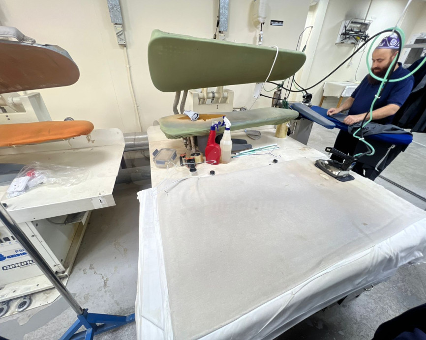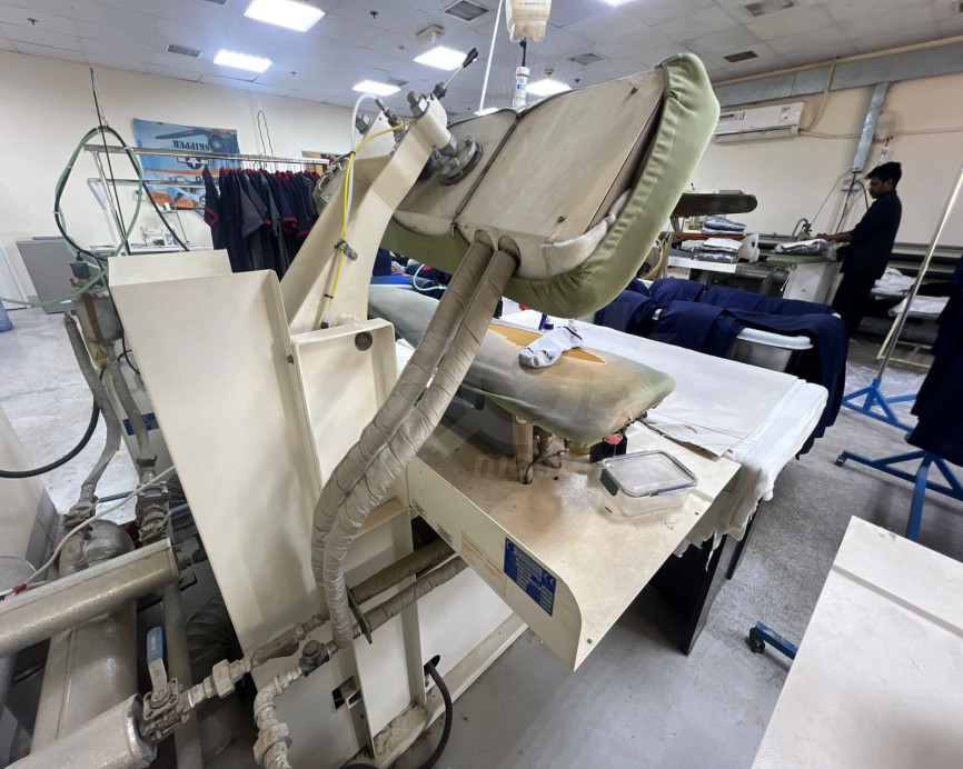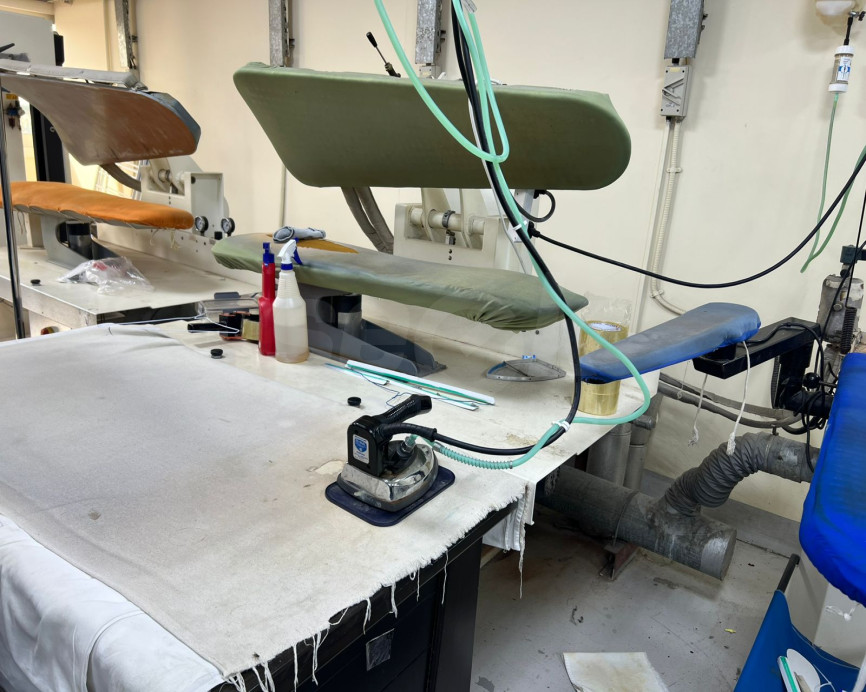 This machine is designed for heavy-duty use in dry cleaners, tailor shops, and garment manufacturing facilities.