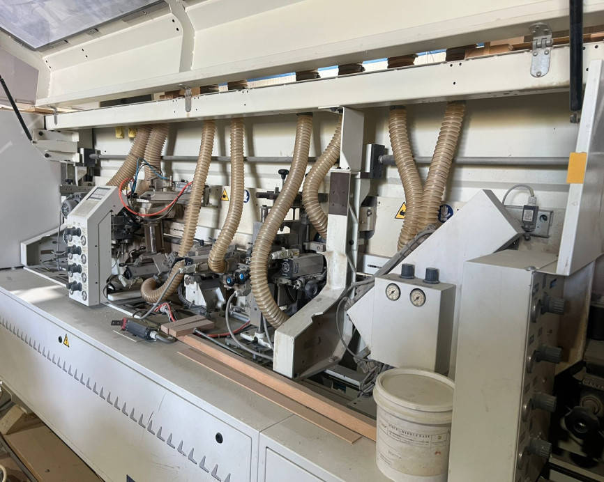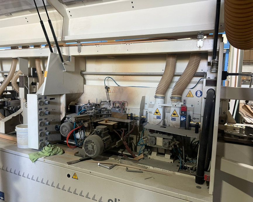 This Italian-built machine is designed for high-quality straight edge banding suitable for cabinet makers, panel furniture manufacturers, and joinery workshops.