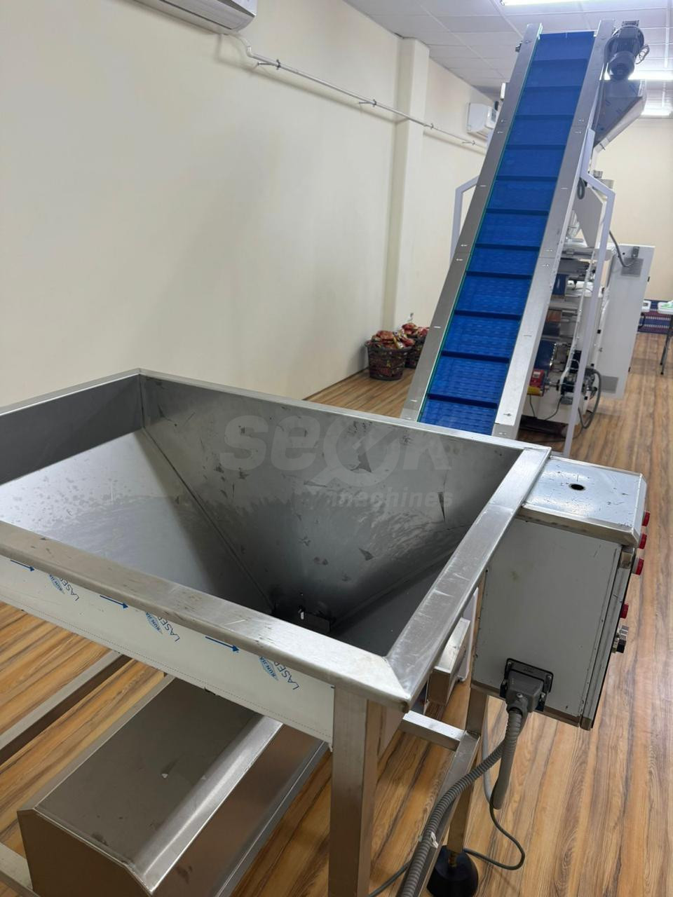 Complete Line: Includes vibrating tank, long belt, short belt, and volumetric packing machine